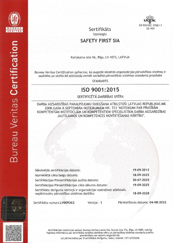 UZTICĪBA UN SADARBĪBA – mēs ne tikai piedāvājam pakalpojumus, bet arī veidojam ilgtermiņa attiecības ar mūsu klientiem, piedāvājot individuālus risinājumus un atbalstu katrā darba drošības posmā.